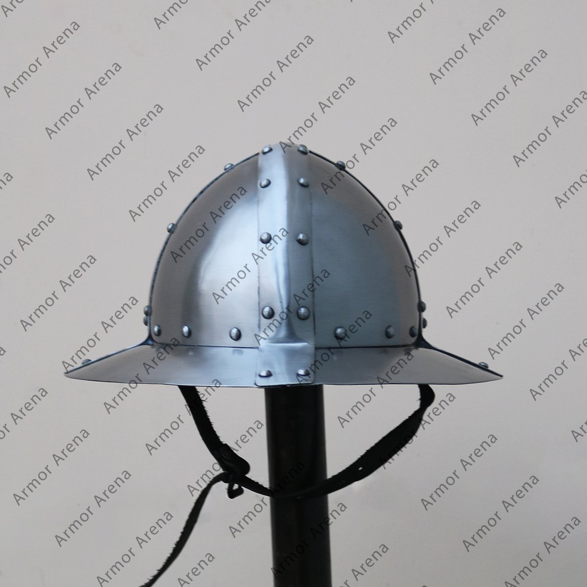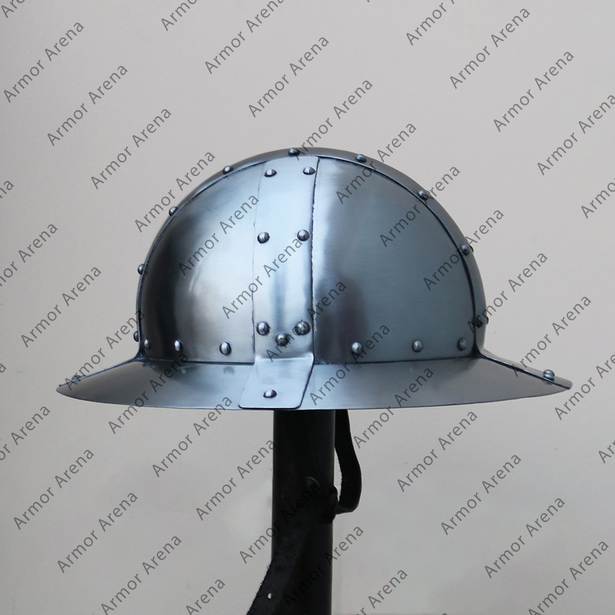This medieval war hat crafted from mild steel and are available in a variety of gauges which includes 20G, 18G, 16G, and 14G. Customer are allowed to choose the strength and weight that suits your needs. Customers can also select between a dull finish or a mirror polish according to the taste and requirement. These Medieval infantry Helmets made to use in LARP, historical events, character portrayal or as collectors items. We offer a guaranteed lowest price to ensuring excellent value for money. Medieval infantry war hat is the best way to add something absolutely original to the collection of medieval antiques.