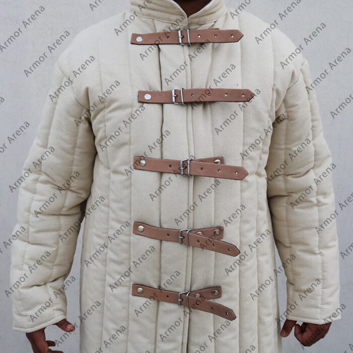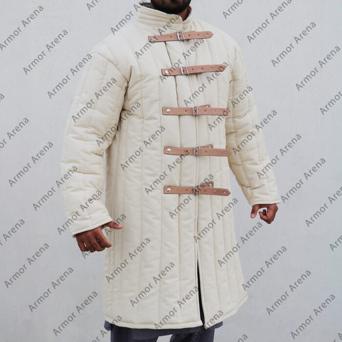 This Long medieval gambeson offers a great fit for everyone and it is available in all sizes from XS to XXL. This gambeson comes in natural cotton colors with the inner lining color changing depending on availability and making each gambeson unique in its style. All straight bottom gambeson are crafted carefully that maintain the authenticity of historical time and there may be slight differences in every gambeson which adding to its special charm. Perfect for historical reenactments, LARP events or adding to your collection then this viking gambeson is a reliable and authentic choice for any medieval fan.
