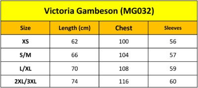 This ladies gambeson offers a great fit for everyone and it is available in all sizes from XS to XXL. This medieval gambeson comes in different cotton canvas colors such as Black, Brown, Natural, Blue, Olive, Wine Red, Light grey and Yellow. The inner lining color changing depending on availability and making each gambesons unique in its style. All Victoria gambeson are crafted carefully that maintain the authenticity of historical time and there may be slight differences in every gambeson which adding to its special charm.