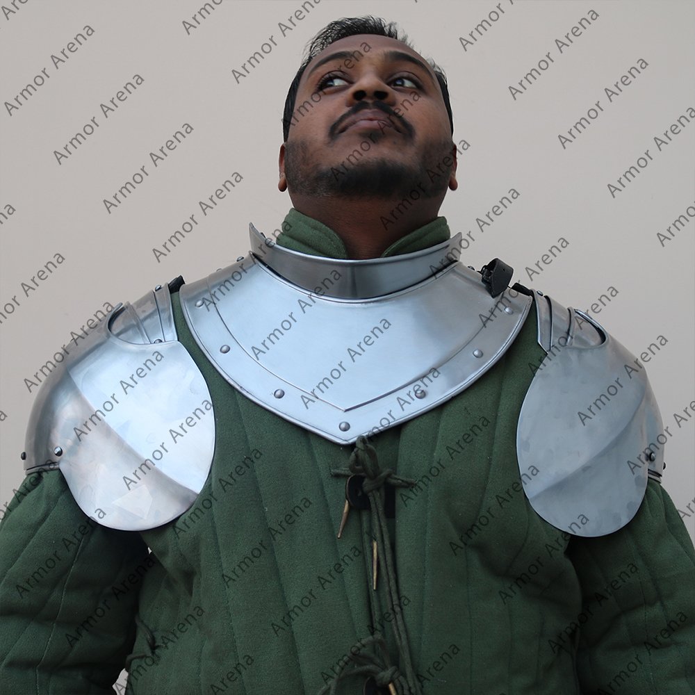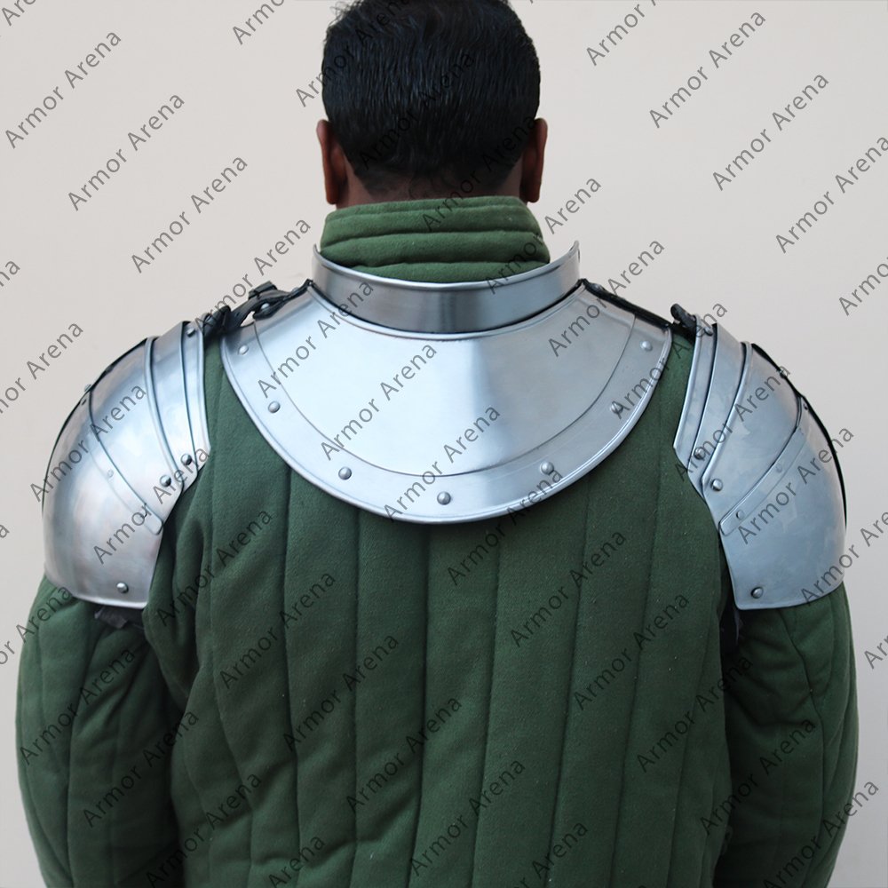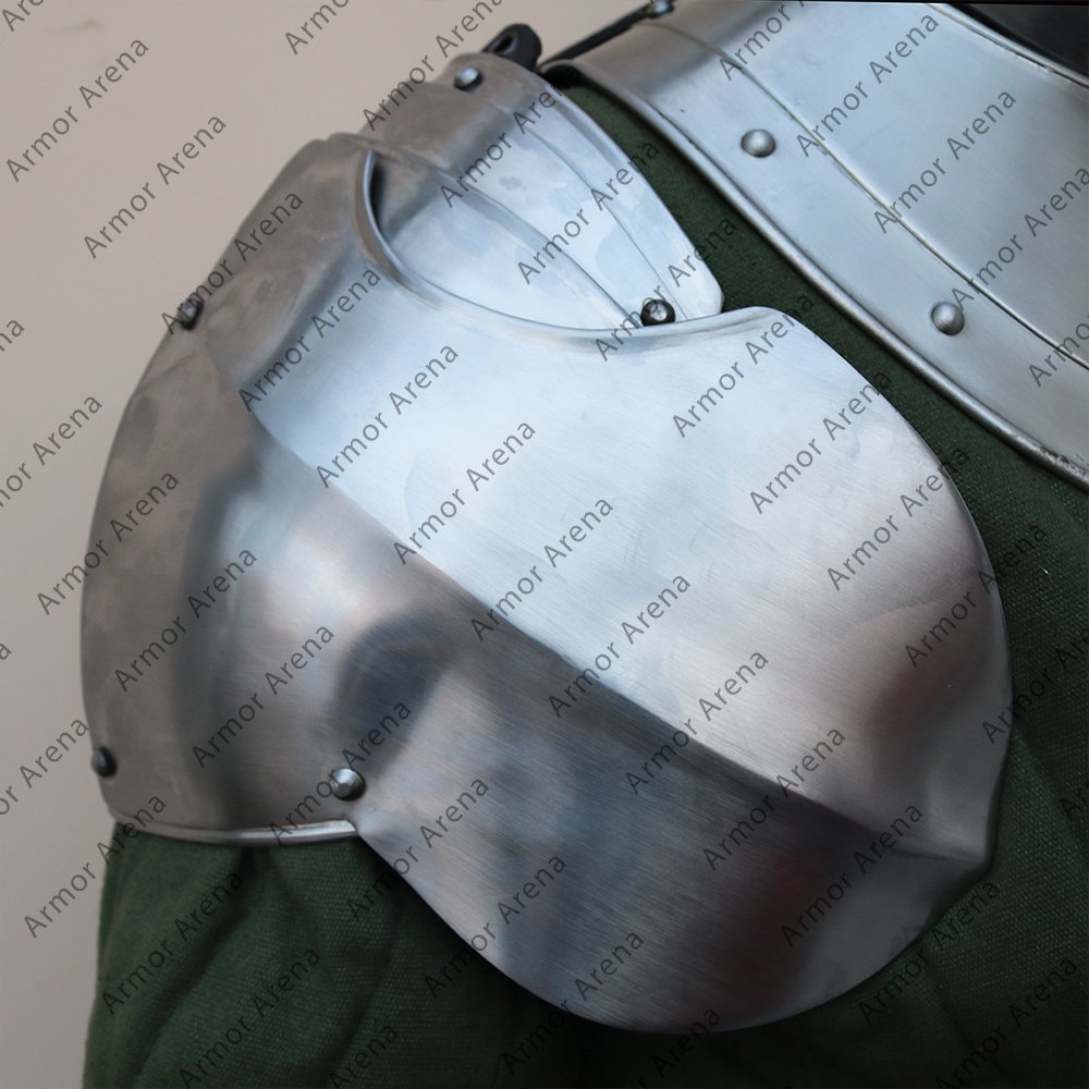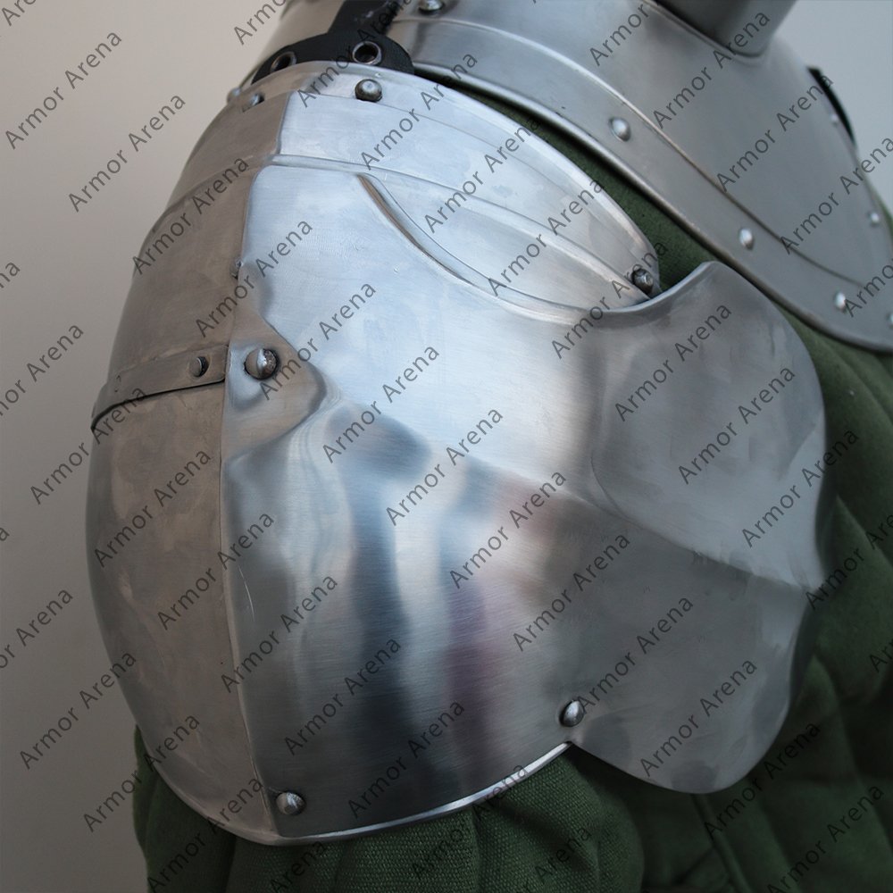 Medieval Milan style shoulder 1450-1485 century provides high stability and maximum protection with mobility. This shoulder protection has an adoptable design which suits many different characters. Combat shoulder is typically designed for noble characters. You can use it with many other parts of armor. All shoulders are made in pairs. All metal products can be made in 20 gauge, 18 gauge, 16 gauge and 14 gauge. Customer can choose Dull finish and Mirror finish.