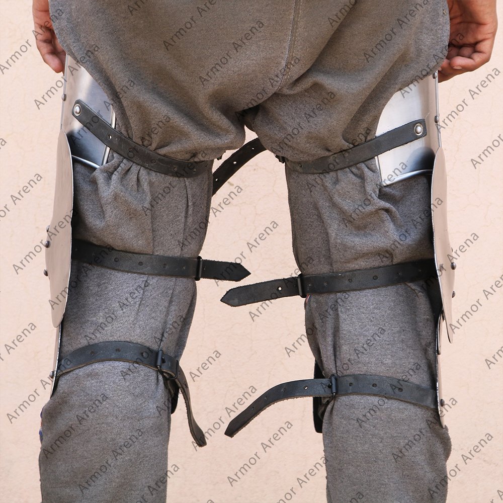 Upper leg guard is adjustable with leather strap and buckle. Following are given adjustable lengths of sizes: